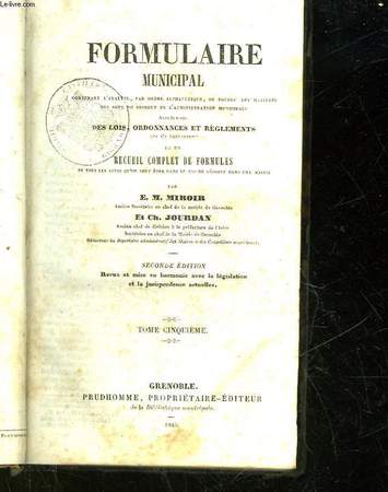 Contenant l'analyse, par ordre alphabétique de toutes les matières qui sont du ressort de l'administration municipale. Avec le texte des lois, ordonnances et règlements qui s'y rapportent. Classification Dewey : 900-GEOGRAPHIE, HISTOIRE, SCIENCES AUXILIAIRES DE L'HISTOIRE