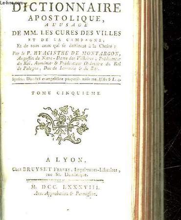 Tome 3 seul. Paru en 13 volumes de 1752 à 1758.[...] Sur l'impureté: l'amour déshonneste. - Le mariage. - La médisance et la calomnie. [...].Le père Hyacinthe de Montargon, mourut à Plombières (Vosges), dans des inondations.