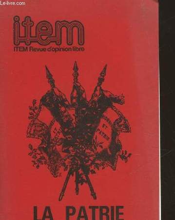 Sommaire : La patrie - Communauté d'une revue - Virgile/ADG : je vous salue patrie - Jacques Perret : cher souci, pieuse rengaine - Jean Dutour : le seul bien des pauvres - Michel Droit : ma patrie d'enfant - Vintila Horio : la patrie selon un ex-apatride - Lajos Marton : Europa patria nostra - Thomas Molnar : le massacre du dragon - A.D.G. : la gisquette - Antoine Argoud : matérialisme contre patriotisme - Jean Bayot : l'amitié de la France - Jacques Benoit : super flumine... - Jean-François Chiappe : deux devant le feu... Classification Dewey : 70.49-Presse illustrée, magazines, revues