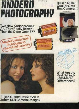 Two New kodachromes : are they really better than the older ones? Build q quick quaker oats box camera!!! ; What are the real Behind-Lens Meter Differences? ; Fujica ST901 : Revolution in 35 mm SLR Camera Design? Classification Dewey : 770-Photographie