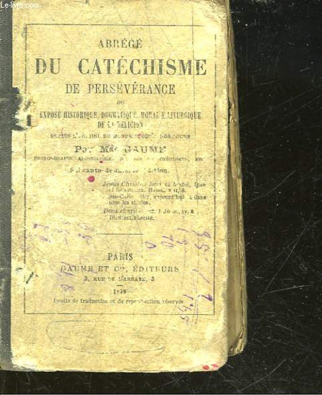 X. RONDELET ET CIE - 62° EDITION. 1899. In-16. Cartonné. Etat passable, Coins frottés, Dos satisfaisant, Intérieur acceptable. 501 pages. Pages scotchées. Ecritures en second de couverture à l'encre rouge.. . . . Classification Dewey : 268-Catéchisme