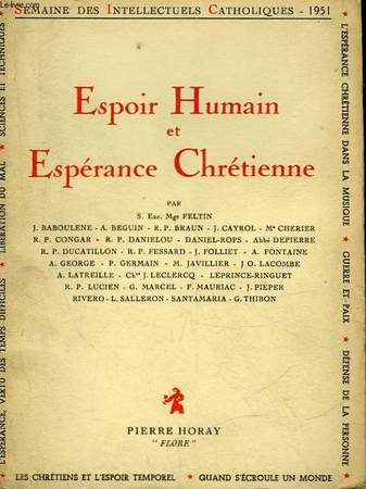 Semaines des intellectuels catholiques (24 au 31 mai 1951), centre catholique des intellectuels français. Auteurs : S. Exc Mgr Feltin, J. Baboulene, A. Beguin, R. P.Braun, J. Cayrol, ME Cherier, R. P. Congar... Classification Dewey : 200-RELIGION