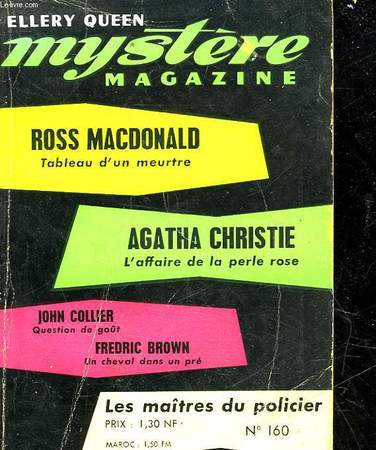 Publication mensuelle de récits policiers complets. Ross MacDonald Tableau d'un meutre, Agatha Christie l'affaire de la perle rose, John Collier Question de goût, Frederic Brown un cheval dans un pré. Classification Dewey : 843.0872-Le roman policier