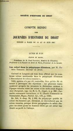 Extrait de la nouvelle revue historique de droit Français et étranger, 4° série 6° année. Publiée sous la direction de MM. J. Tardif, M. Prou, P. Dareste, P. F. Girard, P. Fournier, B. Haussoullier, Roger Grand et E. Perrot. Classification Dewey : 340-Droit