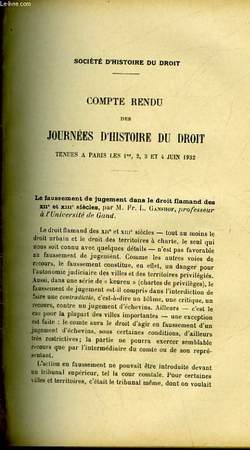 Le faussement de jugement dans le droit flamand des 12° et 13° siècles ; le rôle de l'autoritas dans la mancipation ; le serment de fidélité à l'époque franque ; la situation juridique de la femme sous l'ancien empire et sa représentation dans les mastabas ; la situation juridique de la femme russe au moyen age ; l'administrtion centrale des finances aux pays-bas de 1477 à la fin du 15° siècle ; Marsile de Padour et Guillaume de Nogaret ; le problème de la féodalité en Pologne au Moyen age ; les collection de l'école provençale wisigothique, la collection composée en 550 dite accidentellemnt de Saint-Maur ; la réception en Angleterre de la coutume internationale en matière de conflits de lois ; le trésor royal à l'époque mérovingienne ; la coutume : la leçon romaine sur le fondement de la force obligatoire de la coutume ; les arabes et les origines de la féodalité ; identité des loirs romaines au point de vue de la chronologie ; la crétio d'Herennia Helene ; Extrait de la nouvelle revue historique de droit Français et étranger, 4° série 12° année. Publiée sous la direction de MM. J. Tardif, M. Prou, P. Dareste, P. F. Girard, P. Fournier, B. Haussoullier, Roger Grand et E. Perrot. Classification Dewey : 340-Droit