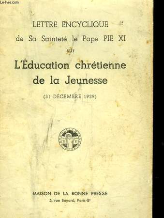 Lettre encyclique de sa sainteté le Pape Pie XI. Classification Dewey : 200-RELIGION