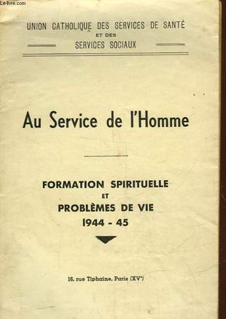 Union catholique des services de santé et des services sociaux. Formation spirituelle et problèmes de vie 1944 - 1945 Classification Dewey : 200-RELIGION