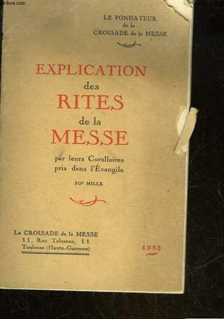 LA CROISADE DE LA MESSE - 30° MILLE. 1933. In-12. Broché. Etat d'usage, Plats abîmés, Dos satisfaisant, Intérieur frais. 80 pages. Nombreux dessins en noir et blanc dans le texte et hors texte. Petit accroc sur les bords des plats.. . . . Classification Dewey : 200-RELIGION