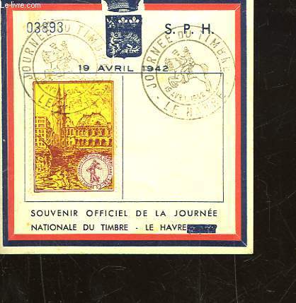 ***. 19-04-1942. In-12. Broché. Bon état, Couv. convenable, Dos satisfaisant, Intérieur frais. 1 carte souvenir officiel de la journée natioanle du timbre, le havre, avec un timbre affranchi.. . . . Classification : 0-Affiches Cinéma