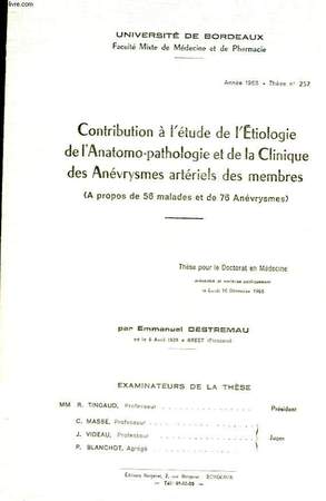 Université de Bordeaux, faculté de médecine et de pharmacie. Classification Dewey : 610-Sciences médicales. Médecine