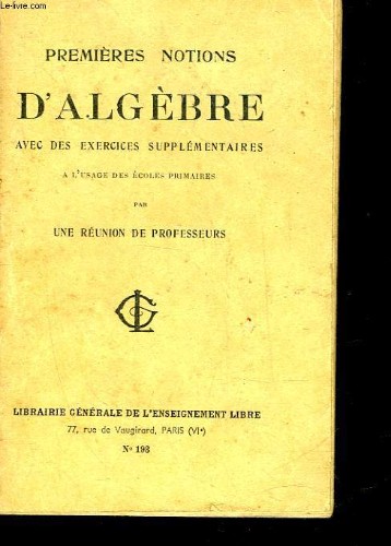 LIBRAIRIE GENERALE - N°193. 1952. In-12. Broché. Bon état, Couv. convenable, Dos satisfaisant, Intérieur frais. 102 pages. . . . Classification Dewey : 372.7-Livre scolaire : mathématiques