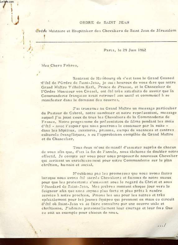 ***. 1962. In-4. En feuillets. Bon état, Couv. convenable, Dos satisfaisant, Intérieur frais. 13 pages dactylographiée. Traces de trombonne rouillé.. . . . Classification Dewey : 200-RELIGION