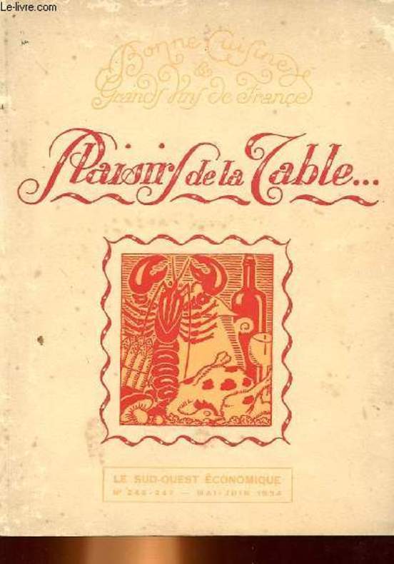 EDITIONS DE PROPAGANDE PUBLIEE PAR LE SUD-OUEST ECONOMIQUE. Mai Juin 1934. In-4. Broché. Etat d'usage, 1er plat abîmé, Dos satisfaisant, Intérieur frais. 272 pages. Nombreuses photos en noir et blanc dans le texte.. . . . Classification Dewey : 641.59-Cuisine régionnale