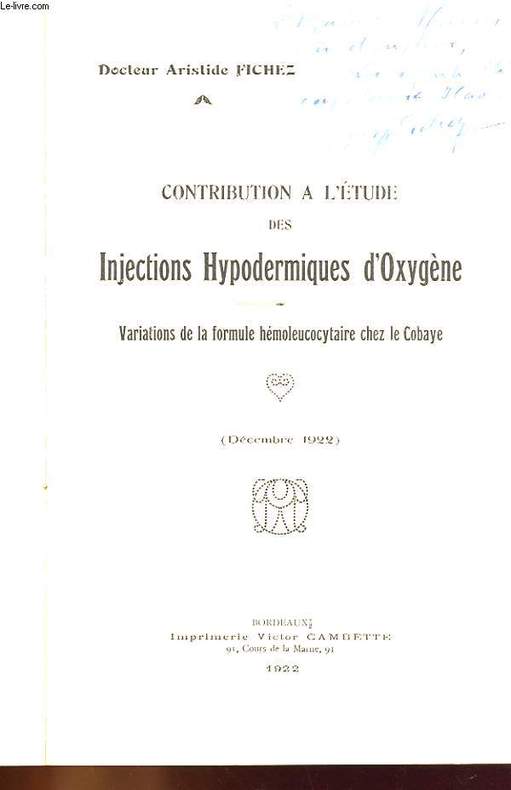 IMP. VICTOR CAMBETTE. DECEMBRE 1922. In-8. Broché. Bon état, Couv. convenable, Dos satisfaisant, Intérieur frais. 48 pages. Envoi de l'auteur.. . . . Classification Dewey : 610-Sciences médicales. Médecine