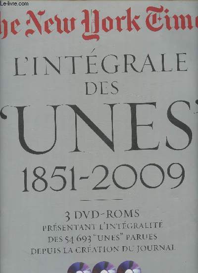 Introduction de Bill Keller. Essais de Rochard Bernstein, Ethan Bronner, Roger Cohen, Gail Collins, Helene Cooper, Thomas L. Friedman, William Grimes, Caryn James, Gina Kolata, David Leonhardt, Steve Lohr, Frank Rich, Carla Anne Robbins, Gene Roberts, William Safire, Serge Schmemann, Sam Tanenhaus et John Noble Wilford. Résumé des unes par James Barron. Sommaire: 1851-1865: Une nation divisée/ 1865-1877: Le colonialisme/ 1877-1898: Les Etats-Unis atteignent la majorité/ 1953-1960: Les Etats-Unis, superpuissance/ 1981-1993: Une révolution sans bain de sang/ 2001-2008: Un futur incertain- etc. Classification Dewey : 70.1-Journaux