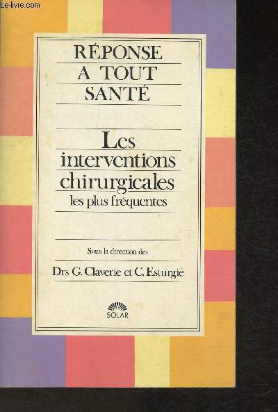 SOLAR. 1990. In-8. Broché. Etat d'usage, Couv. légèrement pliée, Dos satisfaisant, Intérieur frais. 353 pages. Nombreuses illustrations en noir et blanc,dans le texte. Texte sur 2 colonnes.. . . . Classification Dewey : 617-Chirurgie