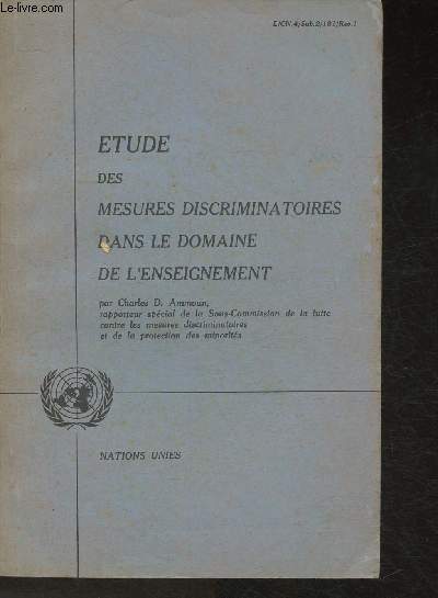 Nation Unies. 1957. In-8. Broché. Bon état, Couv. légèrement passée, Agraffes rouillées, Intérieur frais. 208 pages.. . . . Classification Dewey : 370-Education