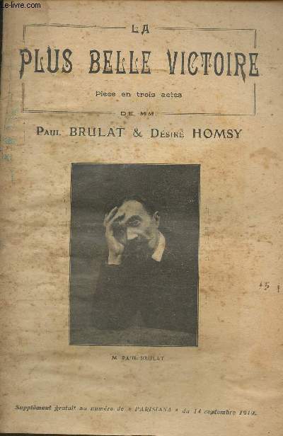 Parisiana. 1919. In-8. En feuillets. Etat d'usage, Couv. défraîchie, Dos abîmé, Rousseurs. 17 pages. Papier jauni. Texte sur 2 colonnes. Rousseurs dans le texte et sur les plats.. . . . Classification Dewey : 792-Théâtre
