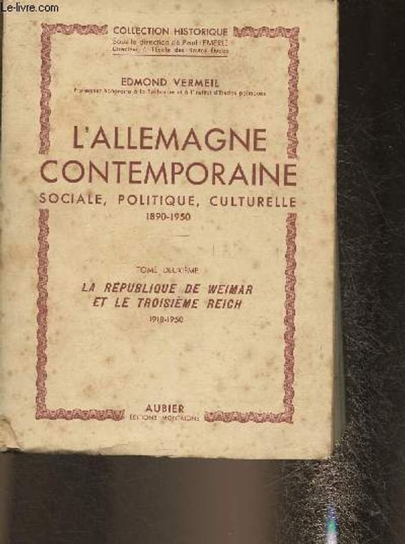 Aubier. 1953. In-8. Broché. A relier, Couv. défraîchie, Dos abîmé, Papier jauni. 443 pages. Nombreuses rousseurs. Quelques accrocs. Coins frottés. Couverture partiellement désolidarisée.. . . . Classification Dewey : 943-Allemagne, Autriche, Hongrie