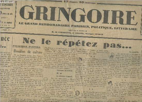 Sommaire: Ne le répétez pas- Naissance du Gringoire- Réflexions-Belle de jour- etc. Classification Dewey : 70.1-Journaux