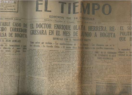 Sommaire: El lamentable caso de un conocido corredor de la bolsa de Bogota- El doctor Enrique Olaya Herrera regresara en el mes de Junio a Bogota- El soviet repudia la politica de violencia que habia practicado- etc. Classification Dewey : 70.1-Journaux