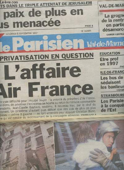 Sommaire: L'affaire Air France- Explosion en plein Paris- Etre prof en 1997- Les bus de minuit séduisent les banlieusards- Les Parisiens à la conquête de l'Est- etc. Classification Dewey : 70.1-Journaux
