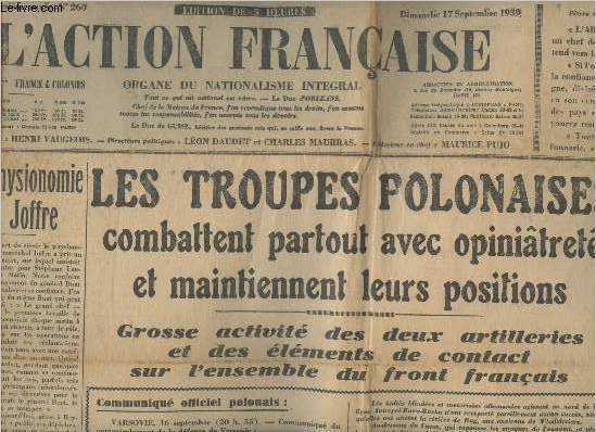 Rédaction. 1939. In-Folio. En feuillets. Etat d'usage, Couv. défraîchie, Dos abîmé, Papier jauni. 4 pages. Pliures, rousseurs, déchirures. Texte sur plusieurs colonnes.. . . . Classification Dewey : 70.1-Journaux