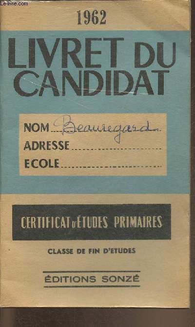 Sonzé. 1962. In-12. Broché. Etat d'usage, Couv. défraîchie, Dos abîmé, Papier jauni. Environ 30 pages. Ex-libris en premier plat. Quelques notes à l'encre. Nombreuses rousseurs.. . . . Classification Dewey : 370-Education