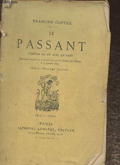 Alphonse Lemerre. Non daté. In-12. Broché. A relier, Couv. défraîchie, Dos abîmé, Papier jauni. 34 pages. Manques au dos. Couverture partiellement désolidarisée. Nombreuses rousseurs. Quelques salissures. Ex-libris et notes au crayon et à l'encre en page de titre.. . . . Classification Dewey : 792-Théâtre
