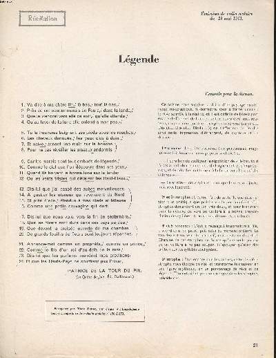 au bureau du journal. 1961. In-4. Broché. Bon état, Couv. convenable, Dos satisfaisant, Intérieur frais. 1 feuillet.. . . . Classification Dewey : 841-Poésie