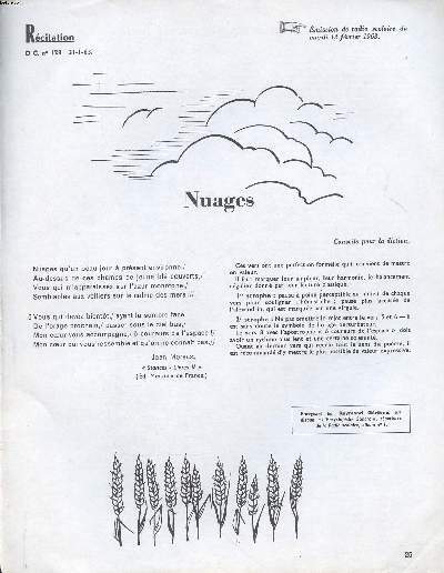 au bureau du journal. 1963. In-4. En feuillets. Bon état, Couv. convenable, Dos satisfaisant, Intérieur frais. 1 feuillet.. . . . Classification Dewey : 841-Poésie