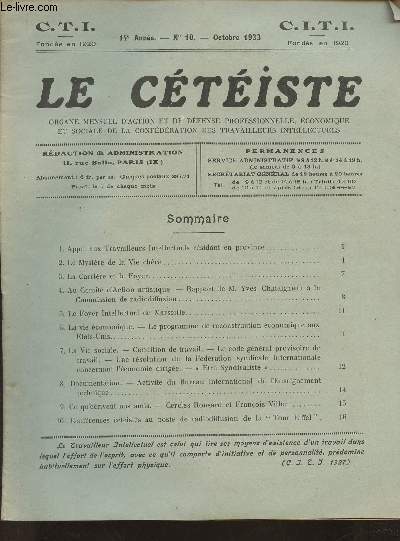 Sommaire: Appel aux travailleurs intellectuels résidant en Province- Le mystère de la vie chère- La carrière et le foyer- Le foyer intellectuel de Marseille- La vie économique, le programme de reconstruction économique aux Etats-Unis- etc. Classification Dewey : 330-Economie