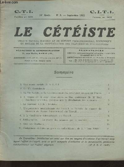 Sommaire: Une année sociale de la C.T.I;- la vie confédérale- le fonctionnement des assurances sociales en France- A propos de la crise écnomique- Le souvenir d'Arthur Fontaine- L'organisation internationale du Travail-etc. Classification Dewey : 330-Economie