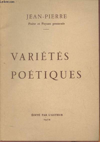 Chez l'auteur. 1972. In-12. Broché. Etat passable, Couv. défraîchie, Dos fané, Papier jauni. Environ 50 pages. Quelques rousseurs. Coins frottés.. . . . Classification Dewey : 841-Poésie