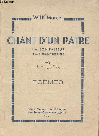 Chez l'auteur. 1954. In-12. Broché. Etat d'usage, Couv. défraîchie, Dos fané, Papier jauni. 31 pages. Coins frottés. Nombreuses rousseurs. Quelques accrocs au dos.. . . . Classification Dewey : 841-Poésie