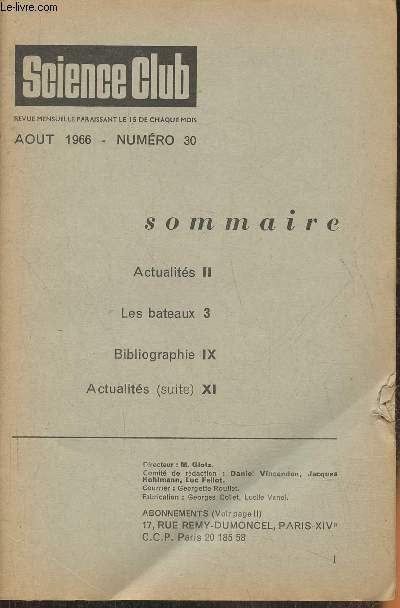 Aux bureaux de la revue. 1966. In-8. Broché. Etat d'usage, Couv. défraîchie, Agrafes rouillées, Papier jauni. 61+XIV pages. Dos fané. Quelques rousseurs. Accrocs en 1er plat. Mouillures pouvant altérer la lecture. Nombreuses photos en noir et blanc et en couleurs, in et hors texte.. . . . Classification Dewey : 70.49-Presse illustrée, magazines, revues