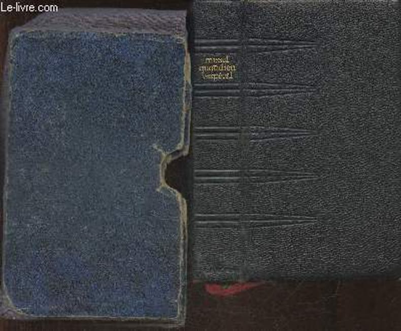 Brepols. 1951. In-18. Broché. Etat d'usage, Couv. légèrement passée, Dos frotté, Intérieur frais. 1649 + 82 + 95 pages - signets conservés - tranches rosées dorées - contre plats jaspés - titre doré sur le dos - missel en latin et en français - texte sur deux colonnes - plats et dos frottés - sous emboitage cartonné souple abîmé - quelques bandeaux, lettrines et culs de lampe en noir et blanc.. . Sous Emboitage. . Classification Dewey : 260-Théologie sociale chrétienne