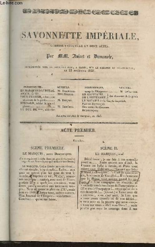 Représenté pour la 1re fois, à Paris, sur le théâtre du Palais-Royal, le 23 Novembre 1835. Classification Dewey : 792-Théâtre