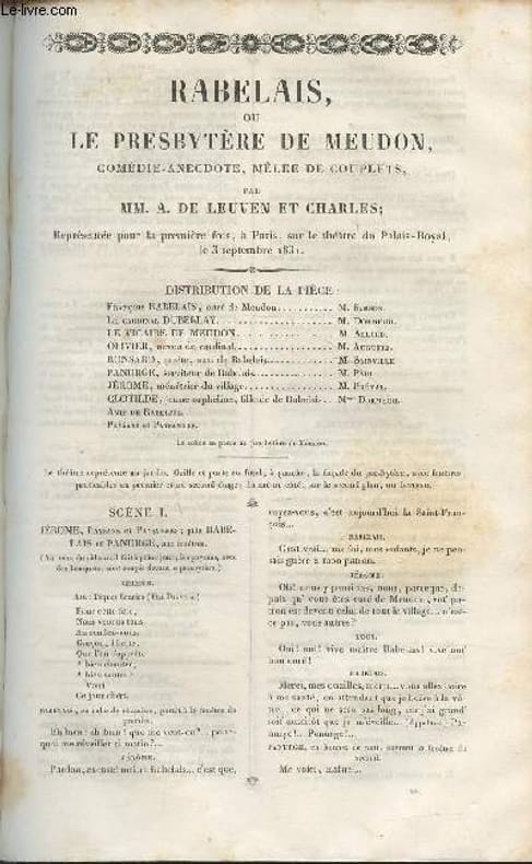 Imprimerie normale de Jules Didot l'ainé. Non daté.. In-8. Broché. Etat d'usage, Livré sans Couverture, Dos abîmé, Papier jauni. Paginé de 62 à 74. Mouillures. Rousseurs. Deux colonnes de texte.. . . . Classification Dewey : 792-Théâtre