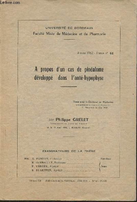 Thèse n°44- année 1962. Université de Bordeaux. Classification Dewey : 610-Sciences médicales. Médecine