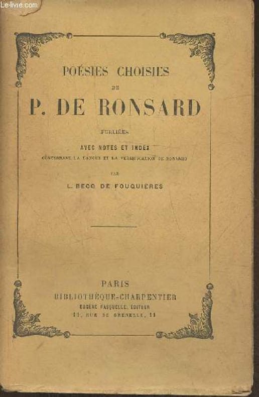 Notes et index concernant la langue et la versification de Ronsard par L. Becq de Fouquières. Classification Dewey : 841-Poésie