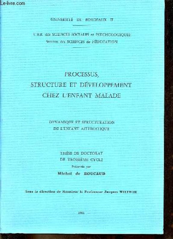 Chez l'auteur. 1981. In-4. Broché. Bon état, Couv. convenable, Dos satisfaisant, Intérieur frais. 215 pages - livre dédicacé par l'auteur - en supplément une lettre manuscrite signée de l'auteur (photo disponible).. . . . Classification Dewey : 155.4-Psychologie de l'enfant