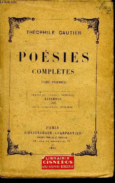 Charpentier. 1919. In-12. Broché. Etat d'usage, Couv. légèrement passée, Dos frotté, Quelques rousseurs. 338 pages.. . . . Classification Dewey : 841-Poésie