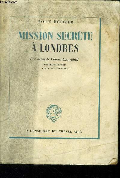 État : Bon état - Année : sd (1948) - Format : in 8° - Pages : 352pp - Editeur : A l'Enseigne du Cheval Ailé - Lieu d'édition : Genève -Bruges - Paris - Type : Broché - Divers : Mors un peu fendu (2cm) en queue du dos. Pages jaunies. - Commander rapidement : https://www.bons-livres.fr/livre/louis-rougier/5493-mission-secrete-a-londres-les-accords-petain-churchill?lrb