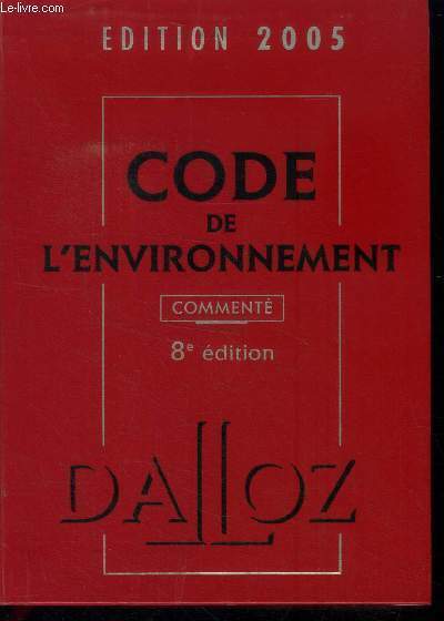 Dalloz. 2004. In-8. Broché. Bon état, Couv. convenable, Dos satisfaisant, Intérieur frais. 2484 + 6 pages. Papier bible. Texte sur une ou deux colonnes. Signet conservé. Plats contrepliés en un rabat.. . . . Classification Dewey : 340-Droit
