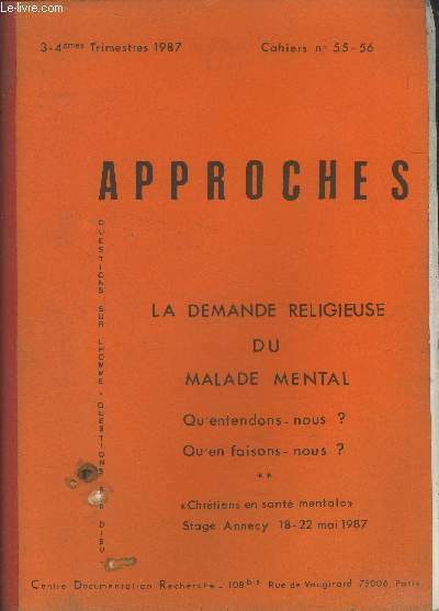 Centre documentation Recherche. 1987. In-12. Broché. Etat d'usage, Tâchée, Dos satisfaisant, Intérieur frais. 168 pages.. . . . Classification Dewey : 200-RELIGION