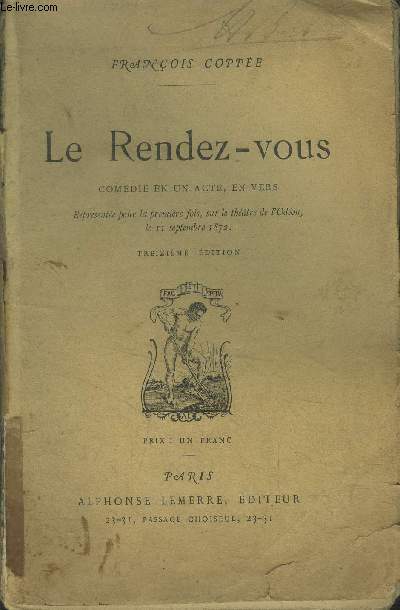 Lemerre. Non daté. In-12. Broché. Etat d'usage, Plats abîmés, Dos satisfaisant, Intérieur frais. 33 pages.. . . . Classification Dewey : 840-Littératures des langues romanes. Littérature française