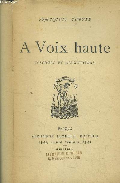 1899, Alphonse Lemerre, in-8 broché de 240 pages, A voix haute - discours et allocutions | Etat : bon état, défraîchi, petits accrocs sur la couverture (Ref.: ref90308)