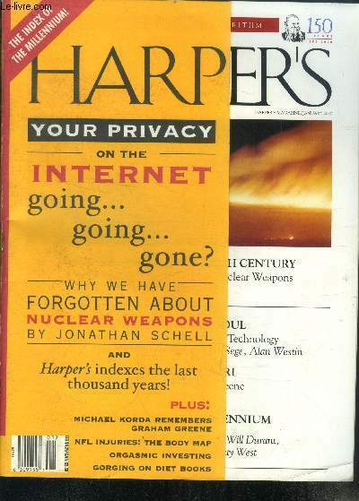Sommaire : 150 years 1850/2000 - your privacy on the internet, going... going... goone?- why we have forgotten about nuclear weapons by jonathan schell- micheal korda remembers graham greene- nfl injuries: the body map- orgasmic investing, gorging in diet books, the unfinished twentieth century- the searchable soul- our man on capri- tne index of the millenium, douglas rushkoff, les murray, will durant, lewis h lapahm on the way west... Classification Dewey : 420-Langue anglaise. Anglo-saxon