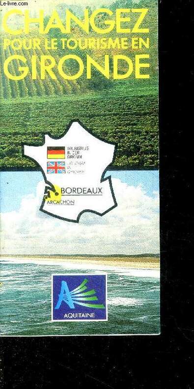 ANIMATION TOURISTIQUE EN GIRONDE / AQUITAINE. Non daté. In-12. Broché. Bon état, Couv. convenable, Dos satisfaisant, Intérieur frais. 24 pages illustrées en couleur. En français, allemand et anglais.. . . . Classification Dewey : 908.447-Régionalisme : Aquitaine